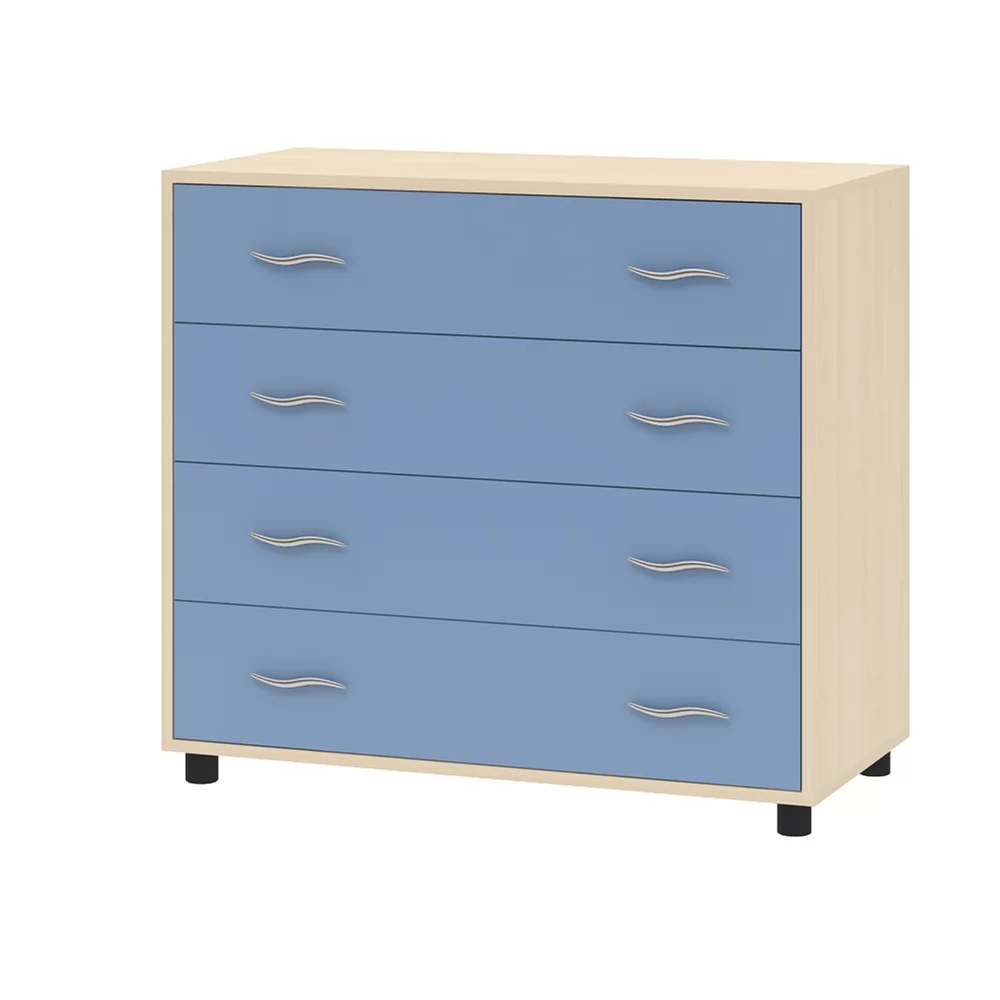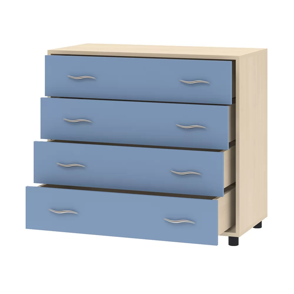 Комод станет прекрасным решением для детской комнаты. Модель содержит 4 вместительных выдвижных ящика, которые позволят удобно расположить все необходимые вещи. Данная модель может быть с успехом скомбинирована с другими предметами корпусной мебели.