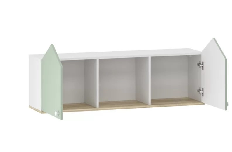Полка НМ 041.46 Банни сделает рабочую зону в детской еще более функциональной. Модуль состоит из двух закрытых отделений и одной открытой ниши. В боковых отделениях предусмотрена полка для размещения книг. Открытая ниша подойдёт для размещения декора, фотографий или игрушек. Скандинавский стиль идеально подходит для детских комнат. Наши дизайнера создали сказочную и волшебную мебель для коллекции «Банни», которая подходи мальчикам и девочкам. Модная, стильная, современная мебель для активных детей. Базовый белый цвет наполнит комнату светом, добавит легкости и зрительно увеличит пространство. Контрастные элементы не отвлекают внимание, не утомляют глаз. Светлый, уютный, теплый интерьер не оставит взрослого и ребенка равнодушными. Оригинальный дизайн в виде домиков придаст интерьеру уникальность. Скругленные ручки на ящиках и дверцах делают мебель безопасной для детей.
