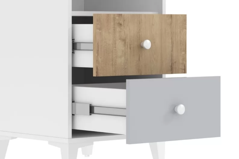 Шкаф-пенал «Морти» – комбинированный одностворчатый шкаф с полками для белья за распашной дверцей и двумя небольшими выдвижными ящиками в основании. Вы можете легко вписать этот предмет интерьера в любое пространство любой площади. Выдвижные ящики с фасадами в модных, спокойных оттенках, характерных для скандинавского стиля и спокойного современного интерьера оснащены шариковыми направляющими. Шариковые направляющие полного выдвижения равномерно распределяют вес содержимого и обеспечивают плавный бесшумный ход ящика. Высокие регулируемые опоры зрительно облегчает конструкцию и делает процесс уборки удобным. Круглые ручки отлично подходят для данной модели.