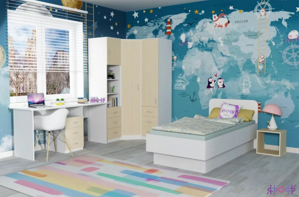 Один из модулей комнаты, красивый, современный, вместительный шкаф.