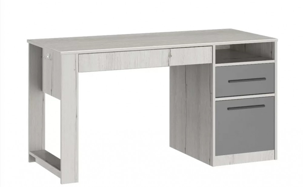 Стол с тумбой и выдвижными ящиками – идеальное решение для подростковой комнаты. Крючки позволят повесить рюкзак или пакет, ящики и полки уместят в себя все учебники, книжки или предметы для творчества.