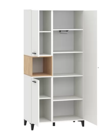 Уникальный шкаф «Bergen» с контрастными вставками, позволит Вам создать неповторимую композицию мебели для гостиной. Шкаф предназначен для хранения одежды. Представляет собой каркас с тремя дверьми и одной нишей. Функциональность шкафа заключается в возможности использования, как с полками, так и с кронштейн-вешалкой. В зависимости от необходимого назначения. Шкаф предназначен как для автономного использования, так и для завершения композиции с тумбами коллекции «Вergen». Традиционно, шкаф устанавливается рядом с тумбой под ТВ и выполняется с глухим фасадом и одной нишей для хранения: сувениров, книг и других предметов интерьера. Для максимально комфортного использования, вставка может быть собрана на левую или правую сторону. Высокие опоры придают внешнюю легкость и удобны для влажной уборки.