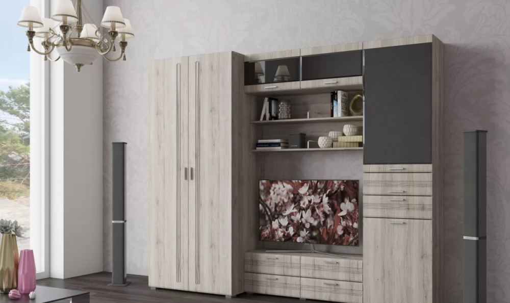 Цвет:Бодега белая/Белое стекло, Дуб серый/Черное стекло