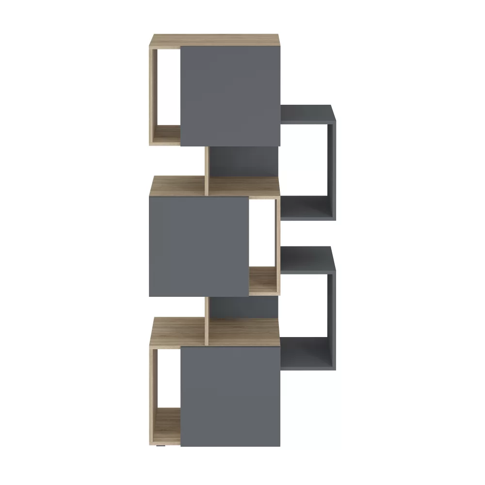 Сочетание материалов разных по цвету (Дуб Сонома и Графит), а также закрытых и открытых секций обеспечивает удобство хранения вещей.