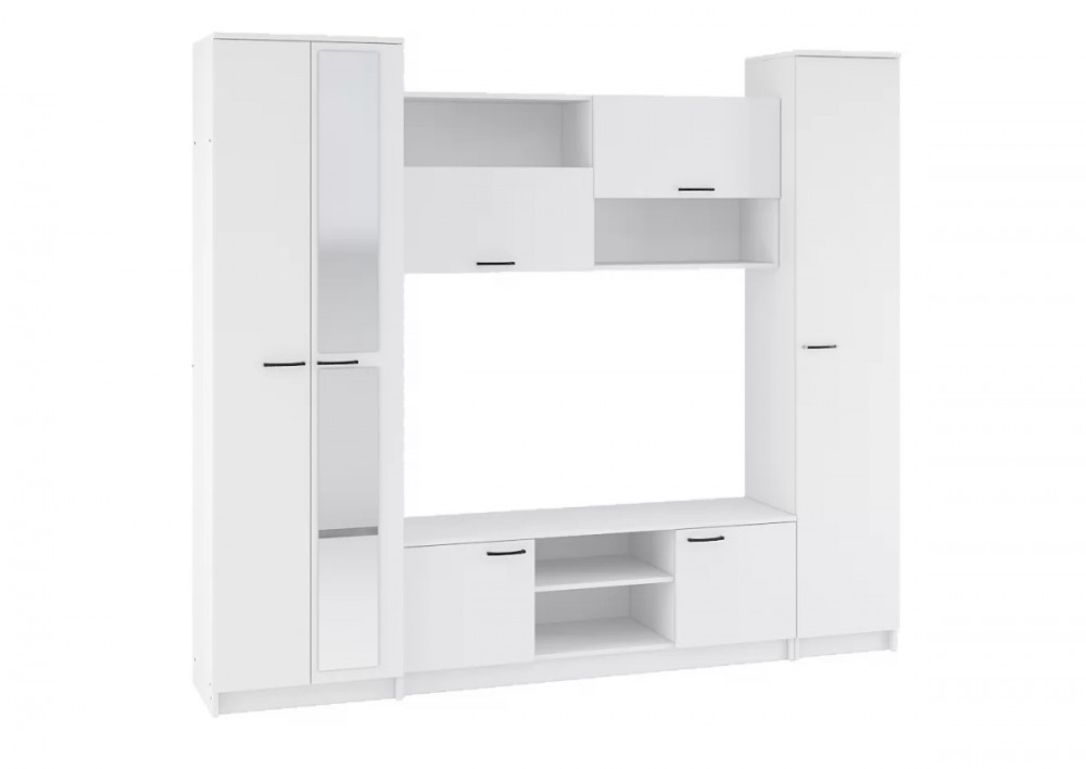 - Гостиная состоит из бельевого шкафа, средней секции и платяного шкафа