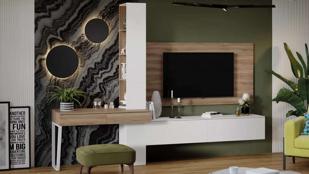 Модульная гостиная «Порто» Яблоня Беллуно, Белый софт в Увате