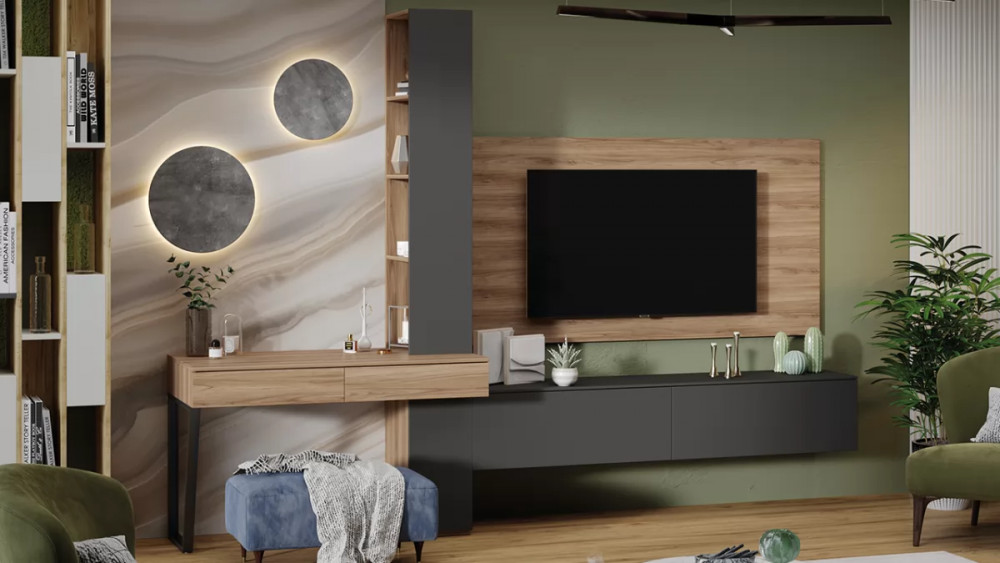 Модульная гостиная «Порто» Яблоня Беллуно, Графит софт в Увате