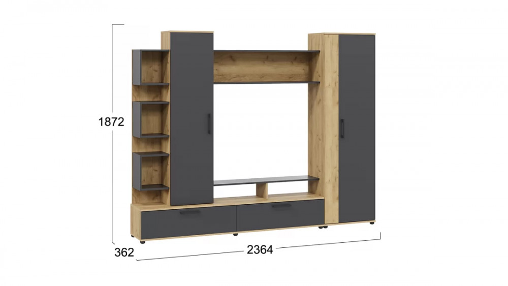 Стенка «Дакота» Дуб Крафт золотой, Антрацит в Увате