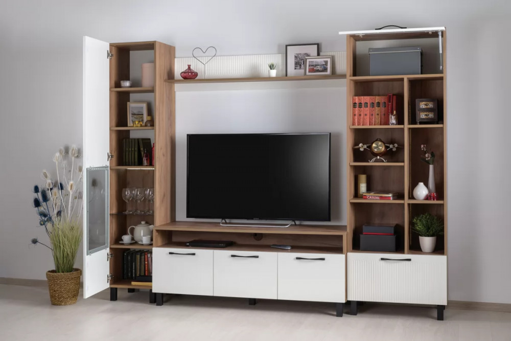 Тумба Манхеттен 13.231 будет отличным дополнением интерьера любой комнаты. Изделие поможет разместить телевизор для более комфортного просмотра новостей, сериалов и различных телепередач. Открытая ниша предназначена для необходимой аппаратуры. А три выдвижных ящика пригодятся для хранения различных вещей и предметов.