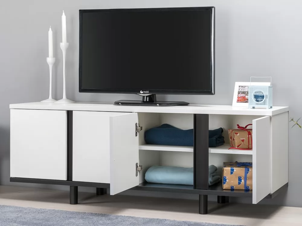 Тумба под ТВ Квадро 13.276 будет отличным дополнением интерьера любой комнаты. Изделие поможет разместить телевизор для более комфортного просмотра новостей, сериалов и различных телепередач. Полки, скрытые за распашными дверьми, пригодятся для хранения большого количества различных вещей и предметов. В столешнице имеется вырез под провода для удобства подключения мультимедиа техники, а регулируемые опоры легко компенсируют неровности пола.