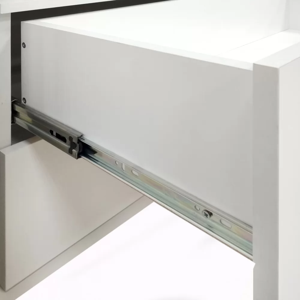 Выкатные ящики работают на шариковых направляющих полного выдвижения - тихих, надежных и позволяющих увидеть всё пространство ящика целиком.