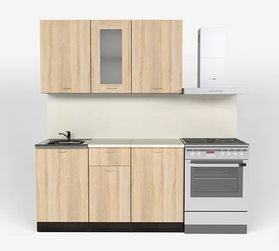 Кухонный гарнитур Симона медиум из ЛДСП в модном цвете "Дуб сонома" впишется в современный дизайн интерьера. Подойдет как для частного дома, так и для небольшой квартиры. Напольные и подвесные шкафы позволят разместить всю кухонную утварь. Гарнитур состоит из набора шкафов, которые органично комбинируются между собой. Ящики, полки, навесные шкафы, тумбы и пеналы можно менять местами, создавая практичное рабочее пространство