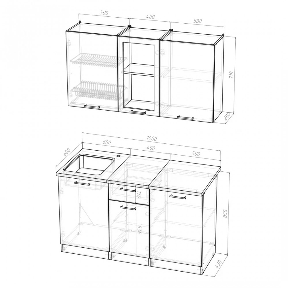 Кухонный гарнитур Симона медиум 1400 мм в Увате
