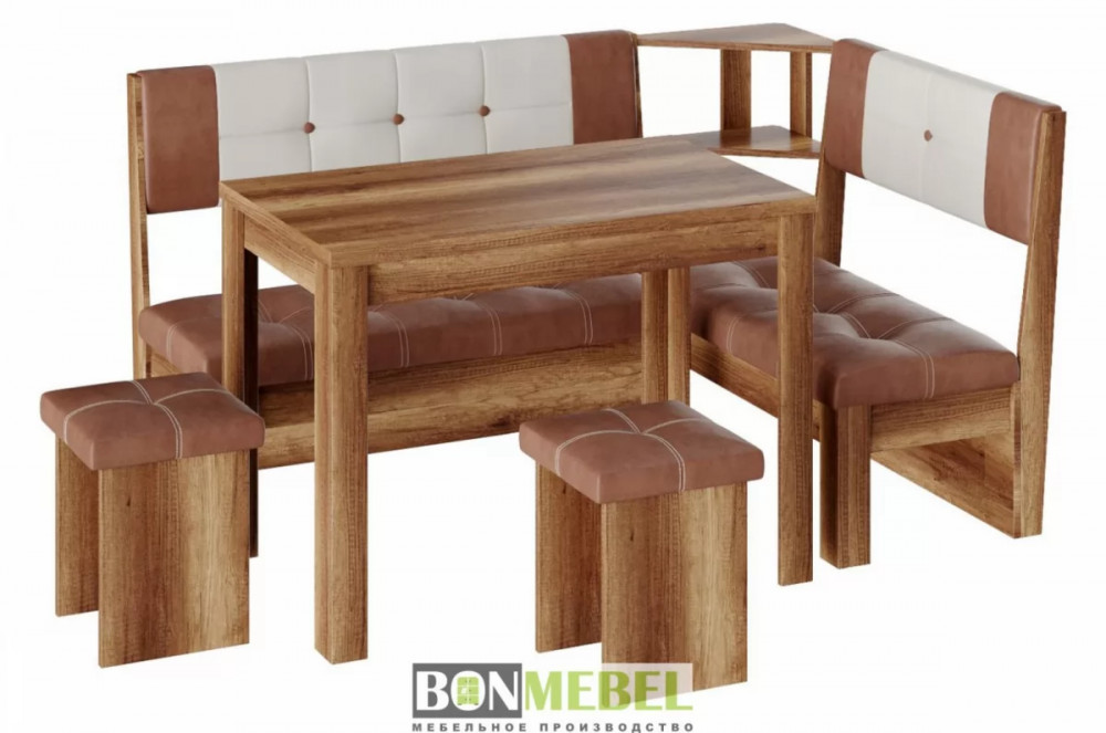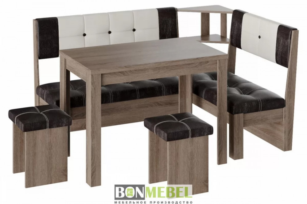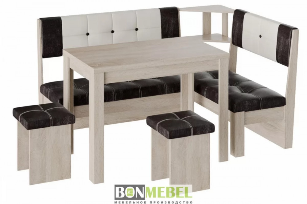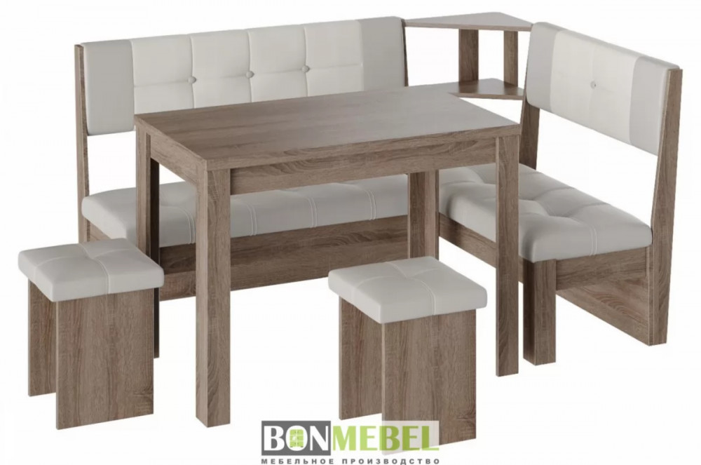 Кухонный уголок Уют 9 поможет выгодно решить вопрос с оформлением комфортабельной обеденной зоны. Привлекательный стиль исполнения комплекта будет легко гармонировать со многими интерьерами. Вы сможете выбрать ориентацию угла скамьи при сборке, благодаря универсальной сборке. Конструкция предполагает наличие нескольких эргономичных полочек. Обивка из экокожи не требует специального ухода, устойчива к истиранию и загрязнениям. В качестве материала изготовления моделей используется ЛДСП.