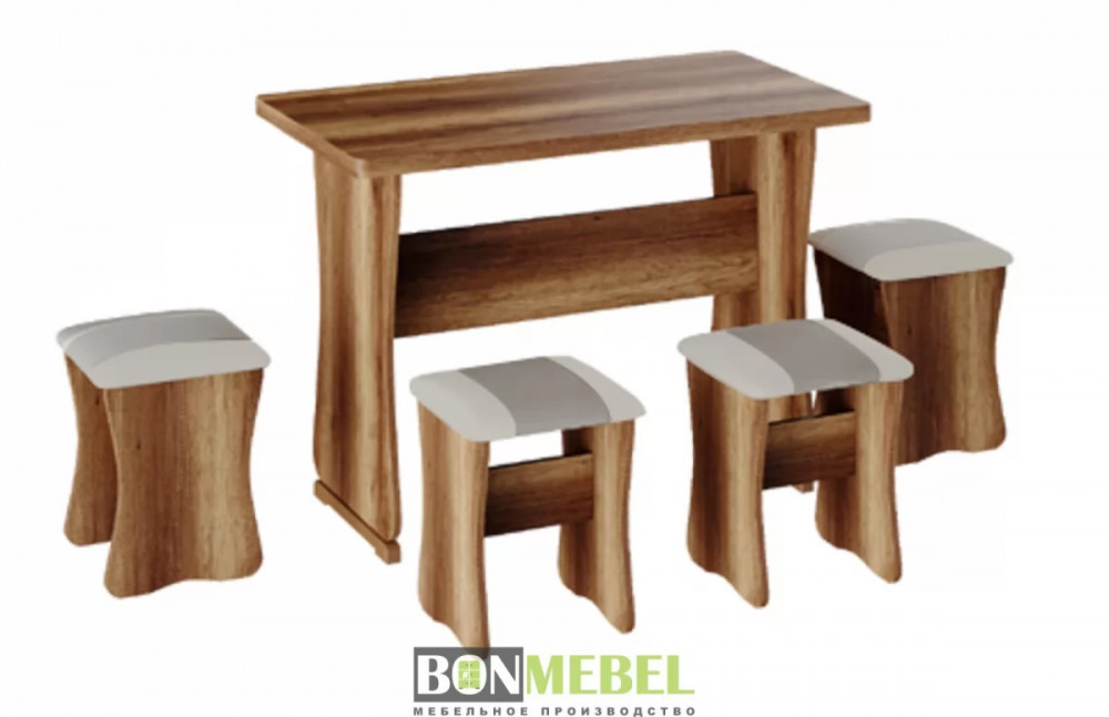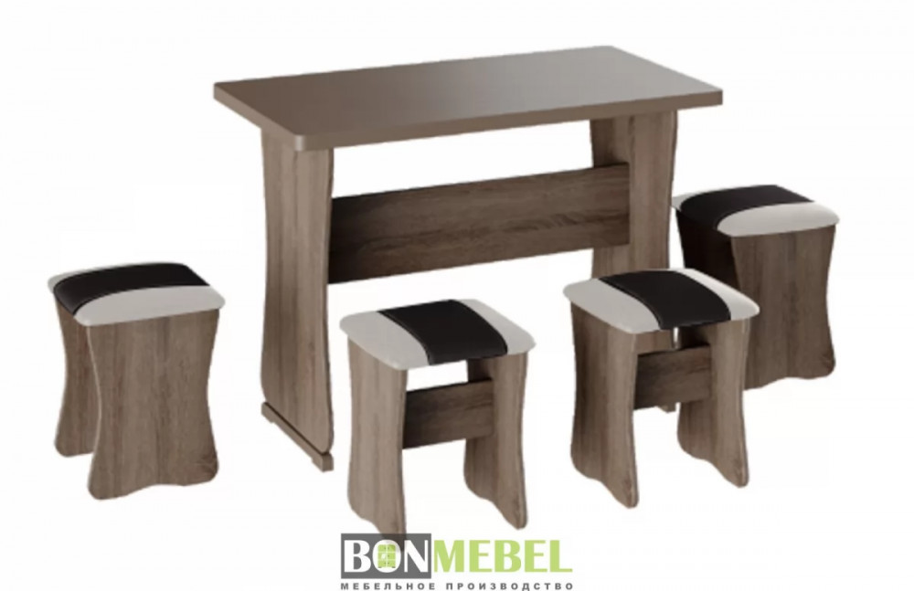 Обеденная группа с табуретами Тип-1 поможет организовать небольшую, но вместительную обеденную зону для четырех человек. Обивка из экокожи устойчива к различным загрязнениям и не требует обработки специальными средствами. Мягкие сиденья табуретов имеют мягкое и упругое наполнение, что повышает уровень комфортабельности. Различные варианты расцветки помогут подобрать идеальный комплект. Для изготовления изделий используется прочная ЛДСП. Обивка табуретов выполнена из искусственной кожи.