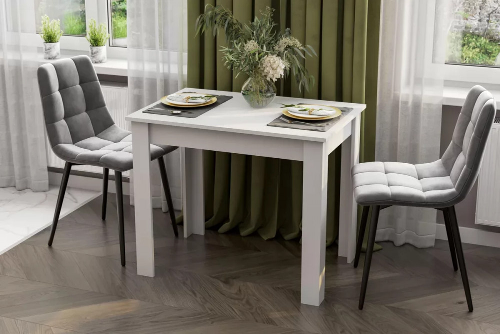 Размеры (мм):ширина - 900,глубина - 600,высота - 740.Материалы: ЛДСП.Цвет: белый.Технические характеристики:Нераскладной кухонный стол с прямоугольной столешницей.Имитация текстуры древесины.Рассчитан на 4 человек.Надежная столешница, устойчивая к воздействию внешней среды.Прочные полые опоры.Объем: 0,025 м3.Производство: Россия.Вес: 14 кг.