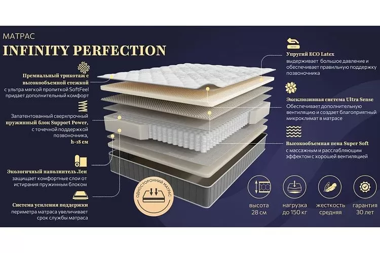 Матрас INFINITY PERFECTION 1800*2000мм (Эколатекс/пена/лен, ср. жесткий, h28см)