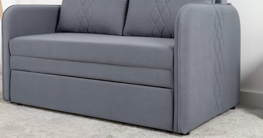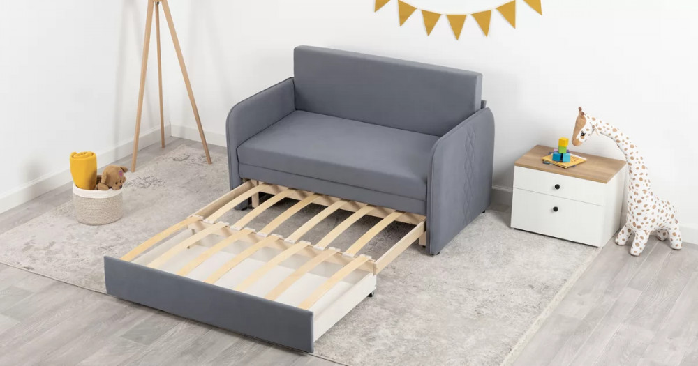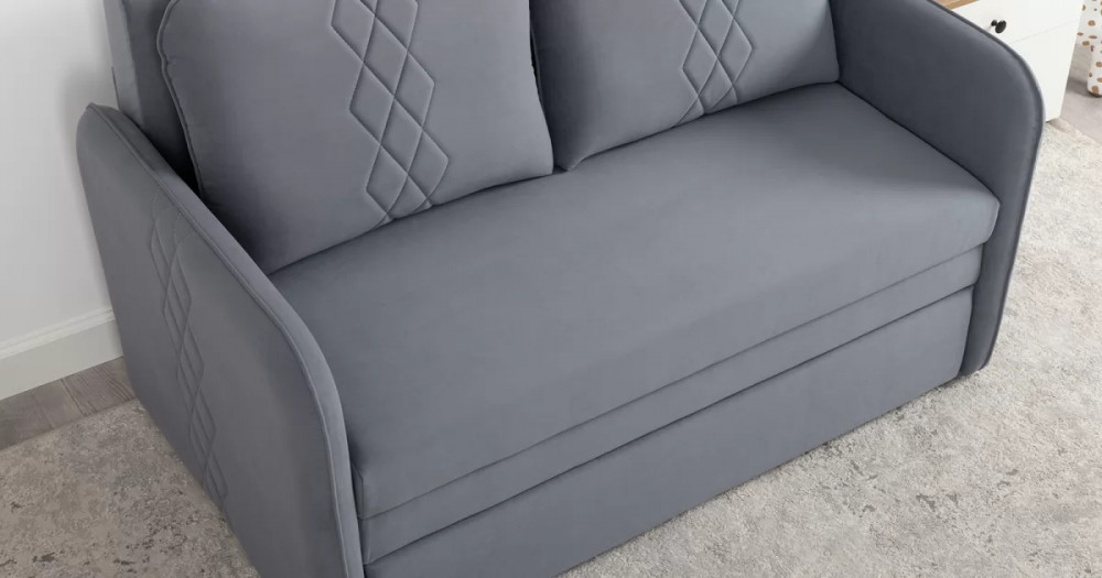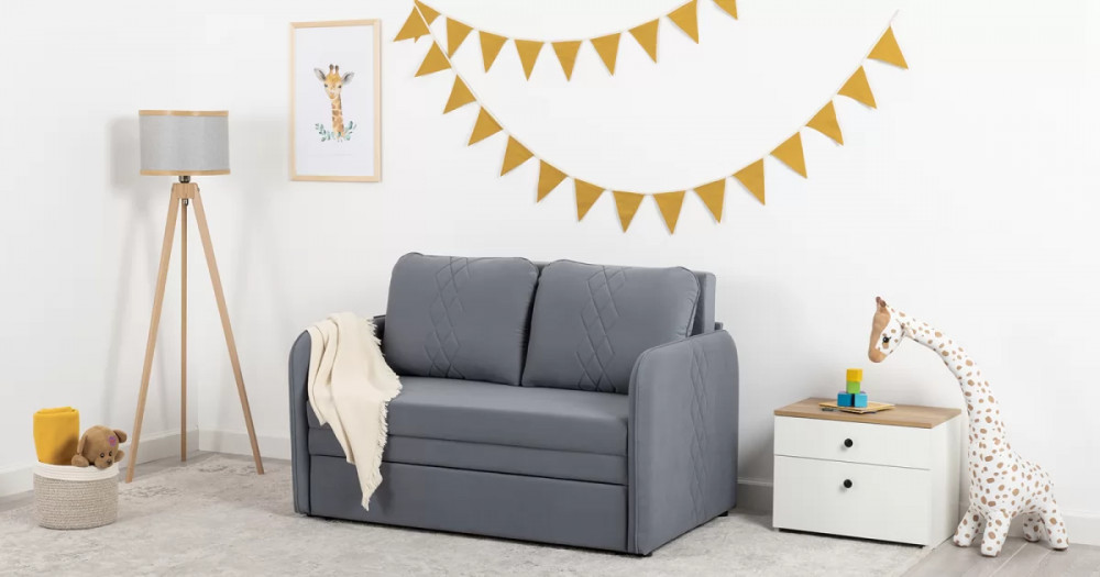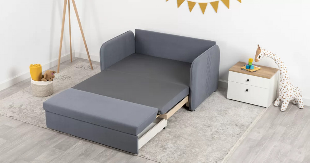 Стильный компактный диван для детской и гостиной. При своих скромных размерах он трансформируется в полноценное спальное место для детей и подростков. Лаконичный дизайн в виде декоративной отстрочки подчеркивает фактуру велюра, а небольшие размеры позволят разместить его в любом пространстве.