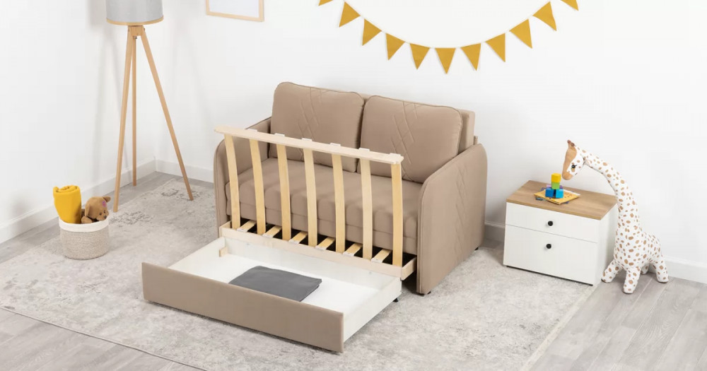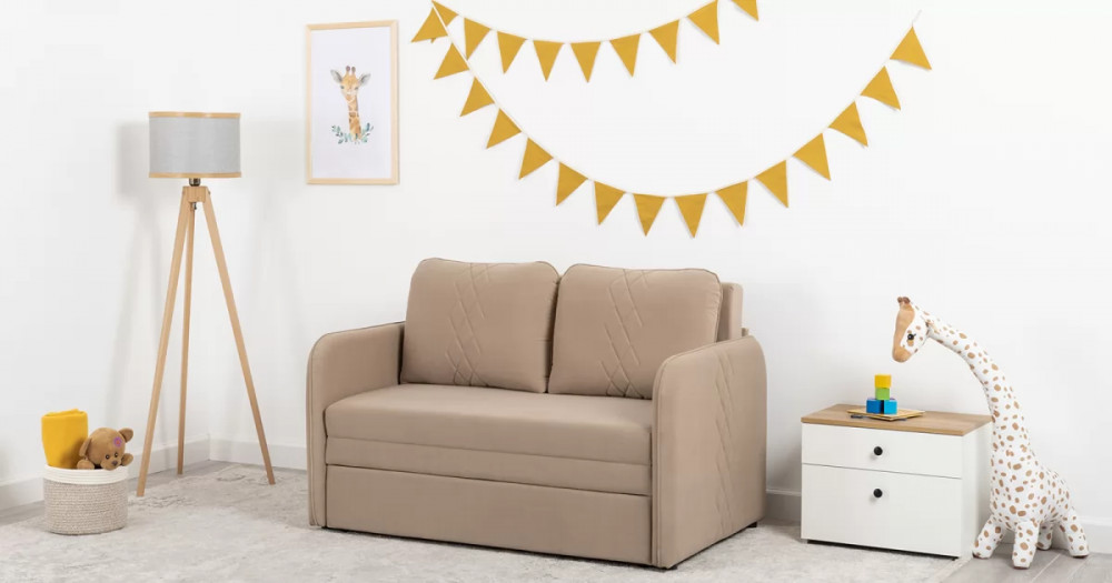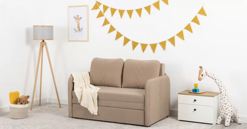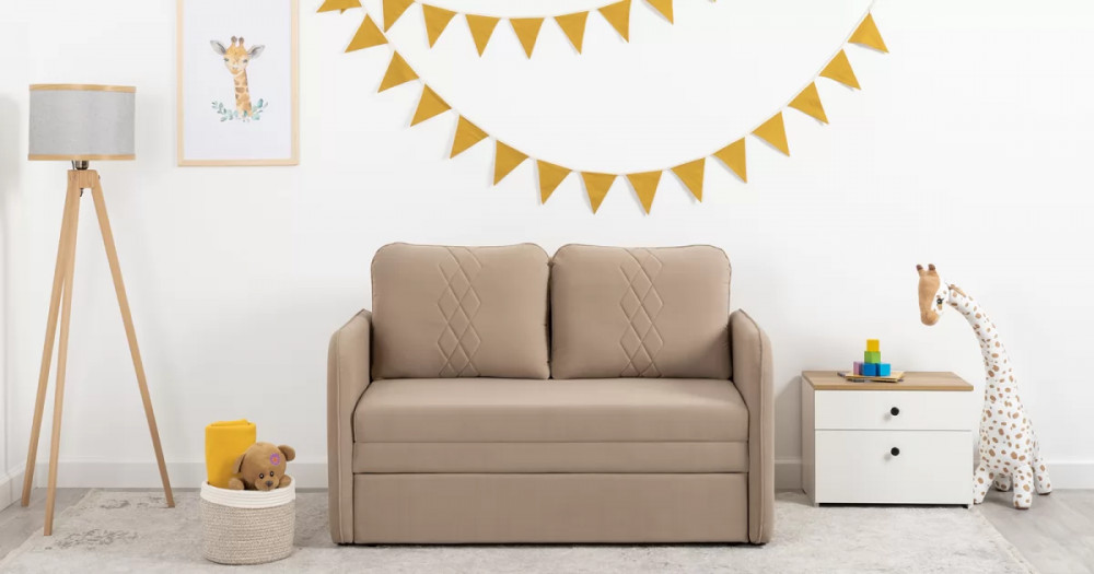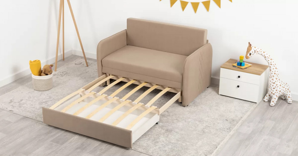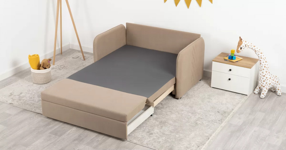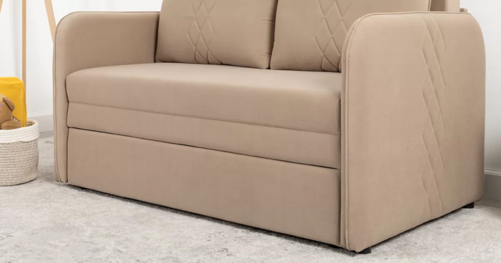 Стильный компактный диван для детской и гостиной. При своих скромных размерах он трансформируется в полноценное спальное место для детей и подростков. Лаконичный дизайн в виде декоративной отстрочки подчеркивает фактуру велюра, а небольшие размеры позволят разместить его в любом пространстве.
