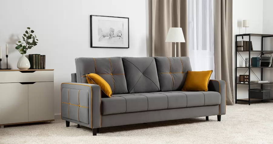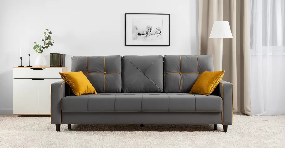 Модные диваны Черри Н порадуют поклонников современного стиля. Контрастные канты, пуговицы и декоративные подушки делают этот диван ярким акцентом интерьера.