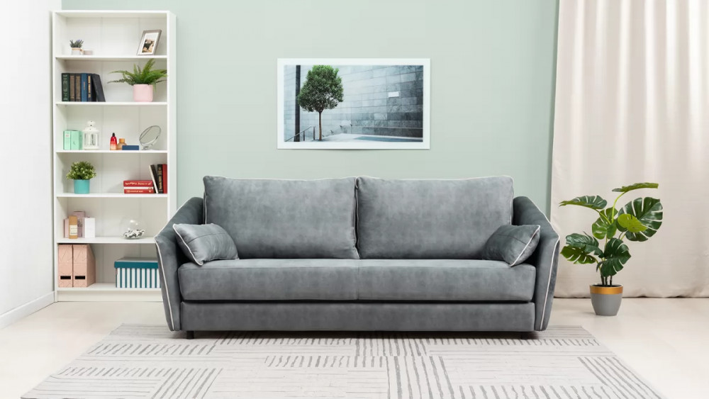 Габаритысложенный (Д x Г х В, мм): -2260 x 1090 x 920разложенный (Д x Г х В, мм): -2260 x 1340 x 750спальное место (Д x Ш, мм): -1980 x 1340высота посадки (мм): -445глубина сиденья (мм): -600высота спинки (мм): -560высота подлокотника от сиденья (мм): -150-300максимально допустимая нагрузка: -240 кг на диванМеханизм трансформации-Книжка с 0 стенойБельевой ящик-есть с перегородкой по центру (2 отделения)размер отделения (Д x Ш, мм): - 890 x 840 x 140Материалыосновная ткань: Greta (велюр)выполняется в тканях: Greta Grafit (серый)/Greta Bone (слоновая кость)каркас: фанера-деревянный брус