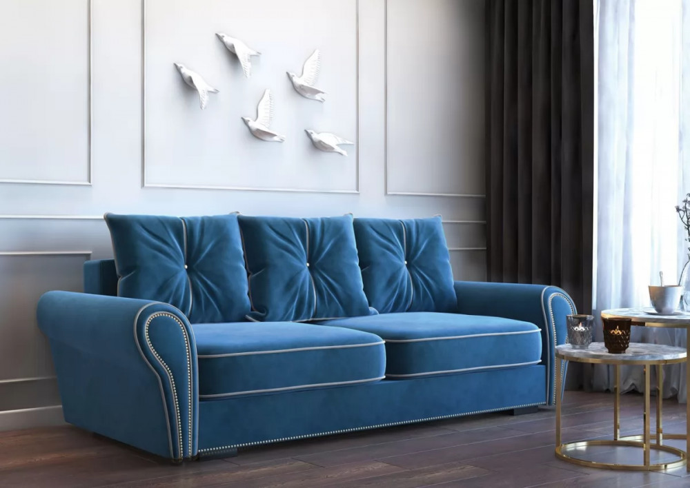 Глубина-1110 мм Ширина-2520 мм Высота-960 мм Срок службы-4 года Гарантийный срок-18 месяцев Монтаж-Требует сборки Длина спального места-1980 мм Ширина спального места-1570 мм Высота сидения от пола-510 мм Наполнение-Холкон, ППУ Тип блока-Блок независимых пружин Декор-Кант, Декоративная отстрочка Механизмы трансформации-Еврокнижка Подушки-Набивные большие-3 шт, набивные малые-2 шт