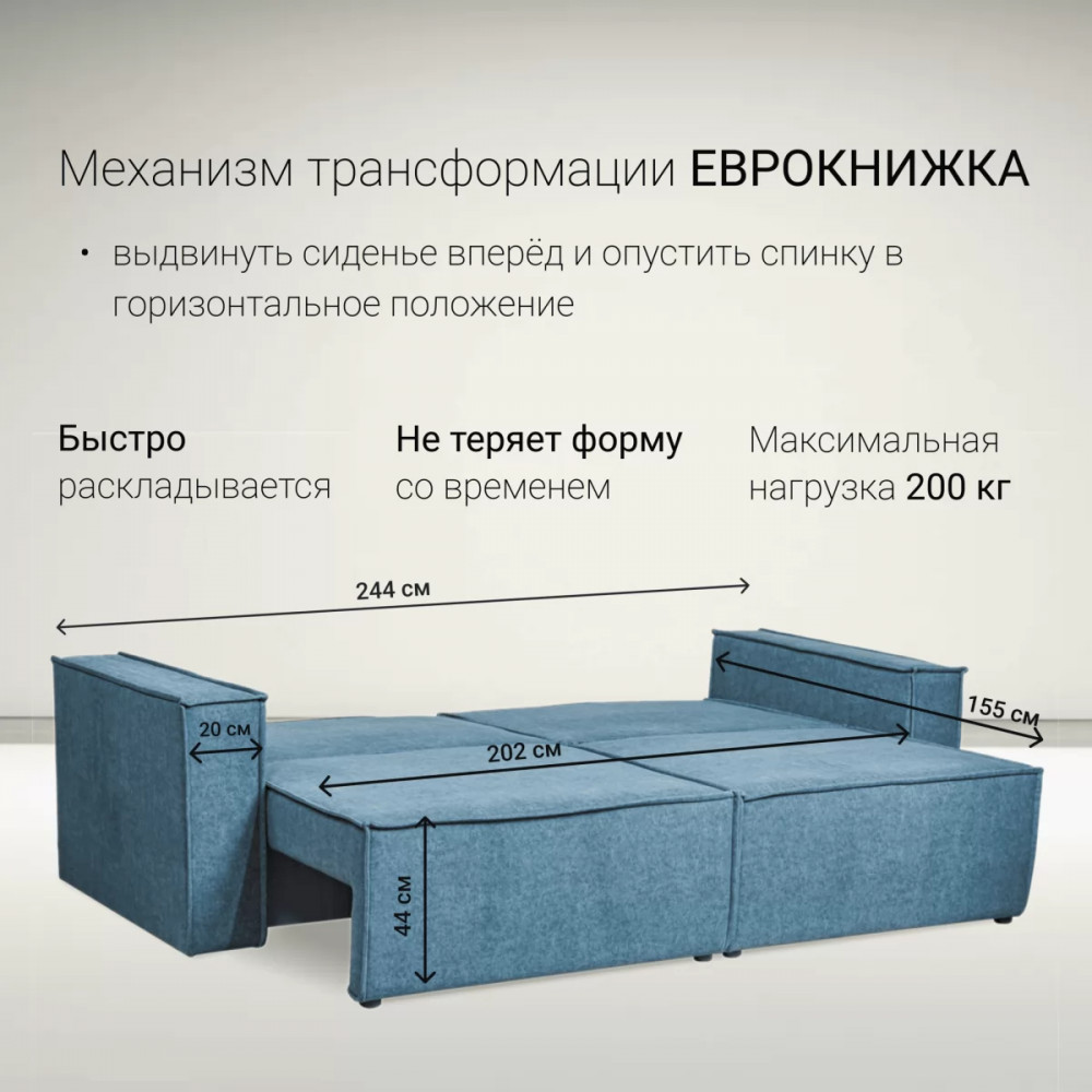 Диван имеет удобную конструкцию «Еврокнижка», с помощью которой образуется полноценное спальное место