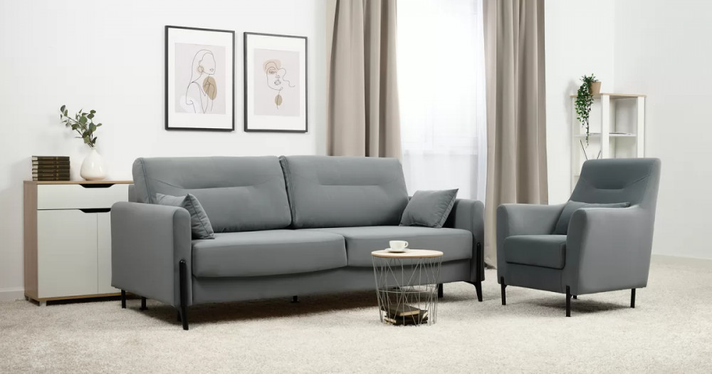 • Металлические опоры плавно переходят в декоративный элемент подлокотника. Декоративная утяжка по приспинным подушкам