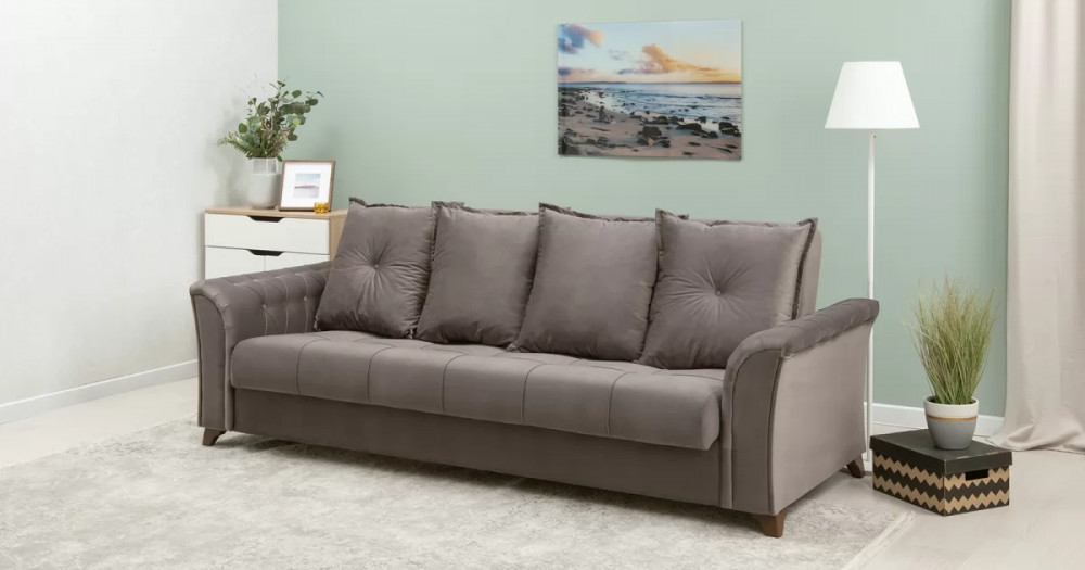 Габаритысложенный (Д x Г х В, мм): 2450 x 1060 x 890спальное место (Д x Ш, мм): 1950 x 1310высота посадки (мм): 460глубина сиденья (мм): 540максимально допустимая нагрузка: 80 кг на одно посадочное место, 100 кг на одно спальное местоМеханизм трансформации-Книжка с 0 стенойБельевой ящик-есть  перегородкой по центру (2 отделения)размер отделения (Д x Ш, мм): 890 x 840 x 200каркас: фанерадеревянный брус