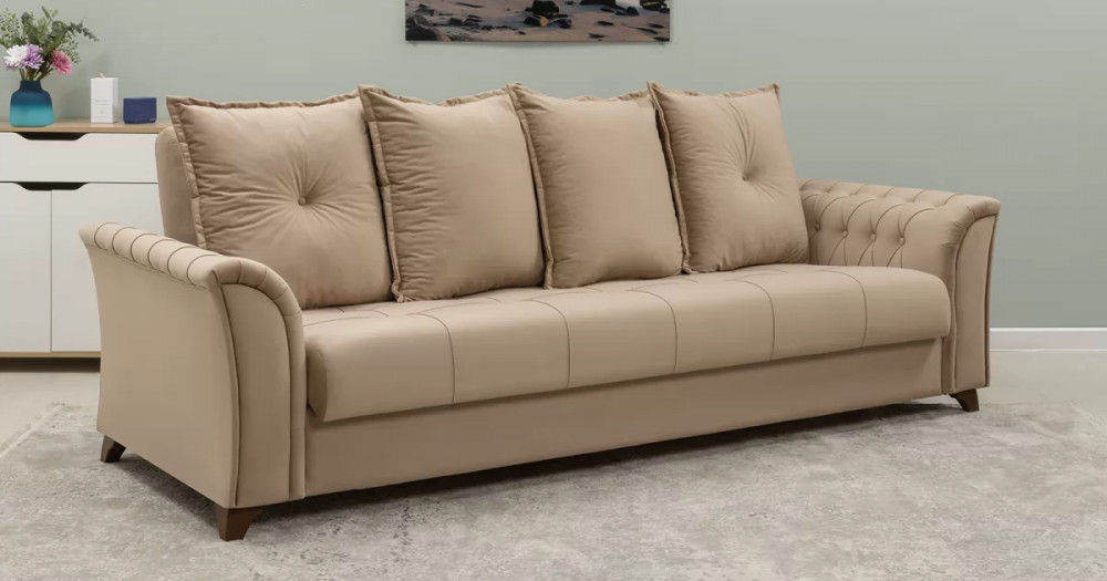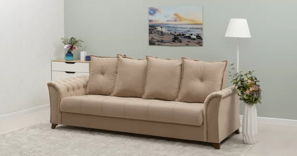 Габаритысложенный (Д x Г х В, мм): 2450 x 1060 x 890спальное место (Д x Ш, мм): 1950 x 1310высота посадки (мм): 460глубина сиденья (мм): 540максимально допустимая нагрузка: 80 кг на одно посадочное место, 100 кг на одно спальное местоМеханизм трансформации-Книжка с 0 стенойБельевой ящик-есть  перегородкой по центру (2 отделения)размер отделения (Д x Ш, мм): 890 x 840 x 200каркас: фанерадеревянный брус