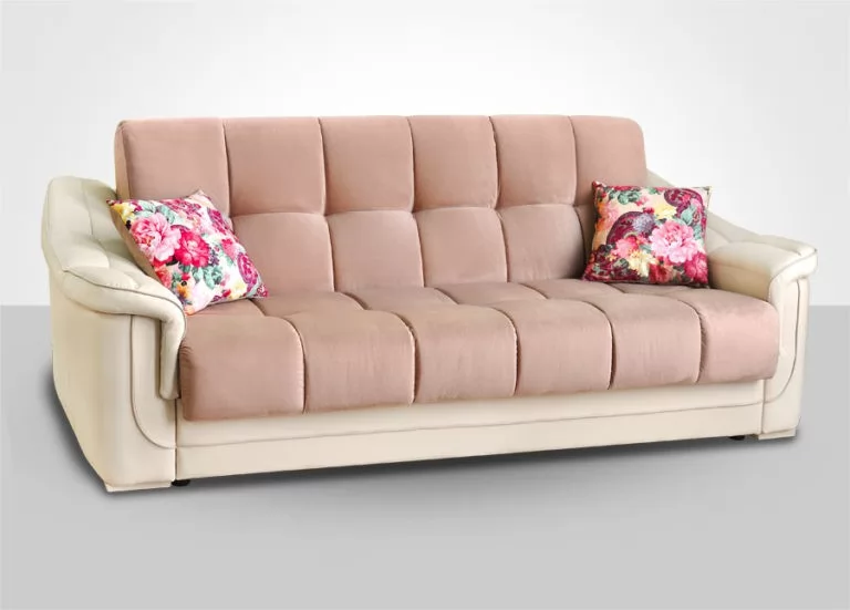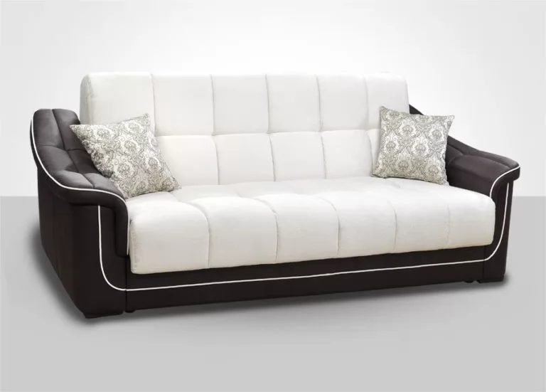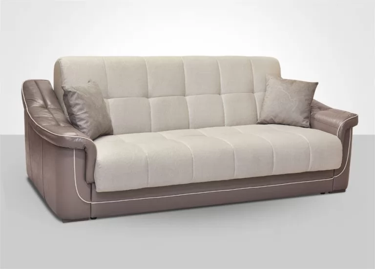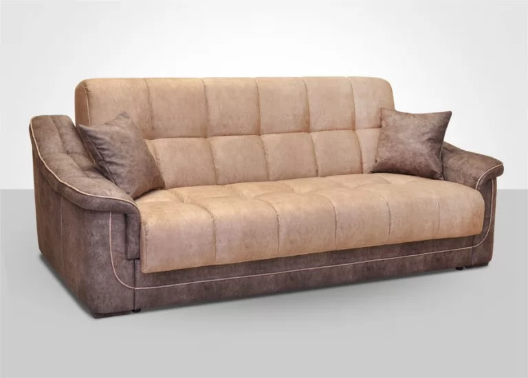 Два ортопедических матраса встроенных в диван. Наружный чехол сшит по спец.технологии. Механизм трансформации не требует каких либо усилий для раскладки дивана. Большой ламинированный короб для белья. Широкие, мягкие подлокотники с утяжкой.