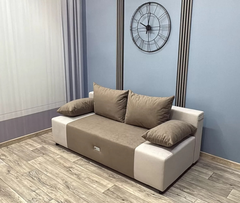 Бюджетный вариант красивого, практичного дивана. Отличное сочетание цены и качества с легкостью украсит любое интерьерное решение. Спальное место формируется путем раскладки «Евро-книжка». Внутри дивана находится вместительный короб для хранения постельных принадлежностей.