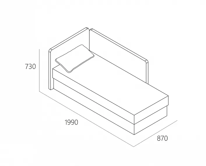 Габаритные размерыШирина: 1990Глубина: 870Высота: 730Спальное место: 1950 х 810 х 465Дополнительная информацияПредельно допустимая нагрузка на отд. хранения(кг): 10Высота сиденья от пола: 465Предельно допустимая нагрузка на сиденье (кг): 110Высота свободного пространства под мебелью: 35Внутренние размеры бельевого ящика: 1850 х 700 х 200Бельевой ящик: ЕстьРазмеры думки ДхГхВ: 620 х 130 х 320Каркас: Хвойный брус. березовая фанера, ЛДСП, ДВПОНаполнение: ППУ ST/змейка одноряднаяМеханизм трансформации: "Акос" подъемное сиденьеБельевой ящик: ЕстьСборка: Не универсальнаяГарантия: 18 месяцевКоличество упаковок 1Вес упаковок 65Объем упаковок 0.935