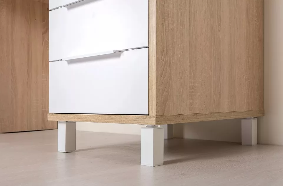 Функциональный и стильный вариант организации рабочего места. Система хранения "Комфорт" №12.95 включает в себя не только удобный стол, но и узкий шкаф-пенал, навесную секцию с несколькими отделениями и тумбу с тремя выдвижными ящиками.