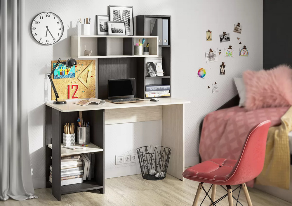 Современный компьютерный стол Олимп стильно смотрится в любом интерьере Открытые полки сложной геометрии не загромождают пространство комнаты - Ниша под монитор (ШхВ) 900х400 мм