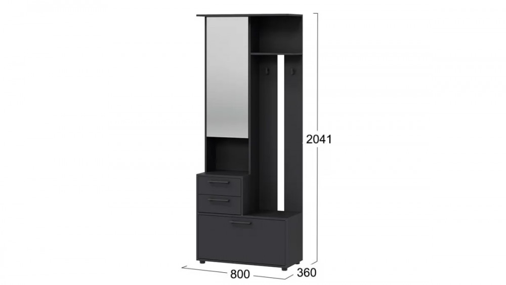 Назначение: Мебель для хранения Количество дверей: 2 Зеркало: Да Гарантийный срок: 24 месяца Комната использования: Прихожая Материал кромки каркаса: ПВХ Стиль: Современный Тип: Вешалка напольная, Секция с зеркалом Расположение: Напольный Тип направляющих ящиков: Роликовые Материал ножек/опоры: Пластик Наполнение: Обувница, Полки ЛДСП, Крючки, Ящики Материал каркаса: ЛДСП Направление открытия двери: Определяется при сборке, Вниз Материал ручек: Пластик Дополнительная информация: Мягкий элемент в комплект не входит Производство: Россия Количество посадочных мест: 1 Габаритная ширина: 800 Габаритная высота: 2 041 Форма предмета: Прямоугольный Габаритная глубина: 360 Количество ящиков: 2 Количество полок ЛДСП: 1 Модель: Витра тип 1 Срок службы: 5 лет Материал фасада: ЛДСП Оттенок: Темно-серый Цвет: Антрацит Цвет каркаса: Антрацит Цвет фасада: Антрацит Оттенок каркаса: Темно-серый Оттенок фасада: Темно-серый Тип сборки: Универсальный левый/правый Наличие механизма раскладки: Нет Наличие спального места: Нет