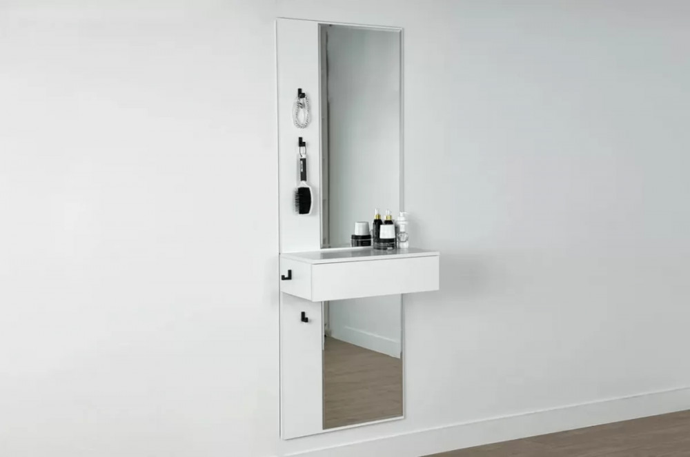 Крючки предоставляют удобное место для хранения сумок или аксессуаров. Выкатной ящик служит дополнительным пространством для хранения мелочей, таких как ключи, кошелек, косметика или другие небольшие предметы.