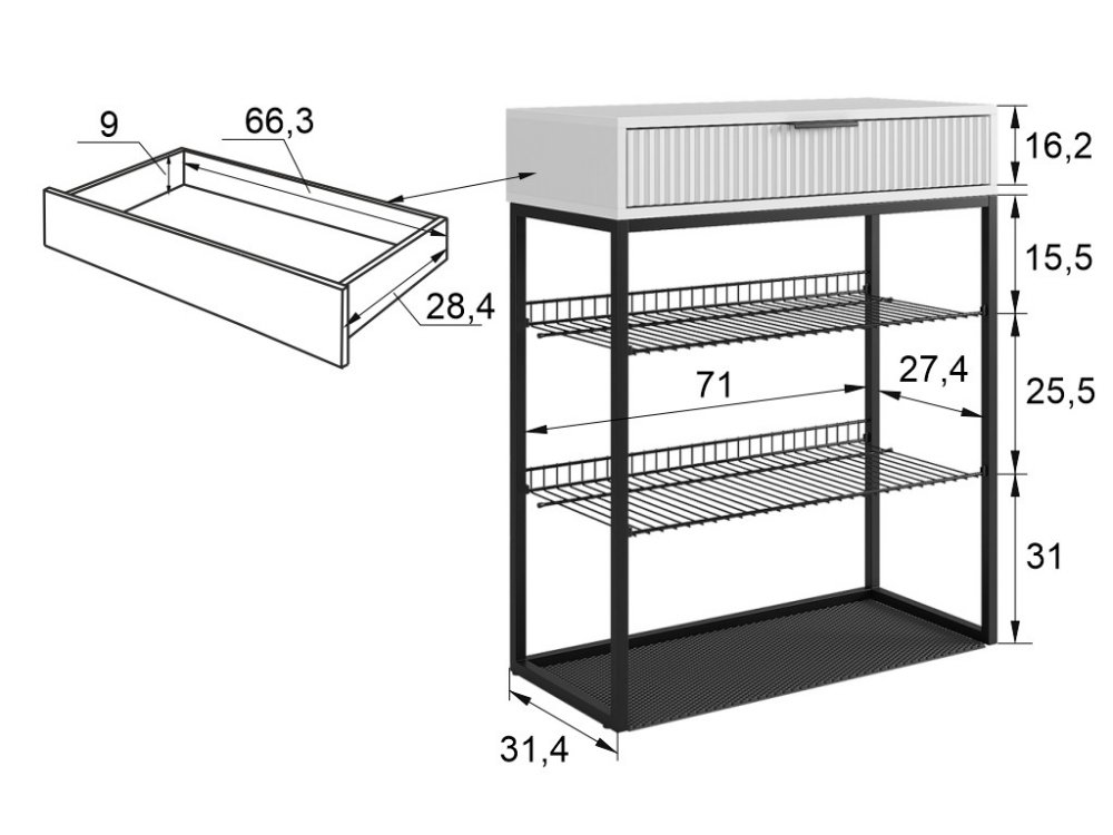 Обувница Вельвет прекрасно сочетает в себе стиль и функциональность. Её дизайн в стиле лофт идеально подходит для современных интерьеров. Выдвижной ящик с шариковыми направляющими обеспечивает бесшумное и плавное открывание, предоставляя удобный доступ к вашим аксессуарам и мелочам. Регулируемые опоры и специальный коврик обеспечивают дополнительный комфорт и защиту.