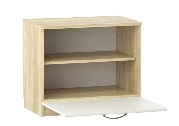 Малогабаритная тумба Оливия НМ 040.47 Х сэкономит свободное место в прихожей. Полка разделяет внутреннее пространство модуля на две равных зоны. Это позволяет упорядоченно хранить обувь в тумбе. Содержимое модуля надежно защищено откидным фасадом.