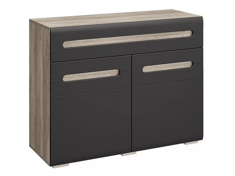 - изделие имеет характерную для коллекции Наоми отделку: корпус выполнен из ЛДСП в цвете дуб каньон, а темно-серые фасады имеют интегрированные ручки.