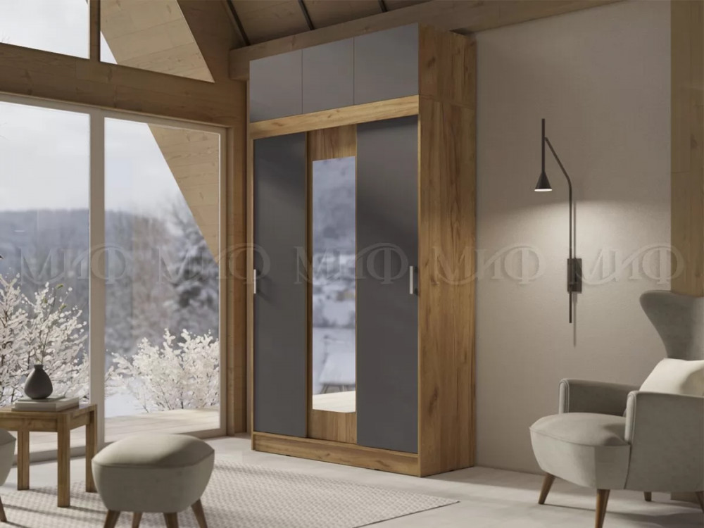 Шкаф с антресолью Басямиф, графит/дуб крафт в Увате