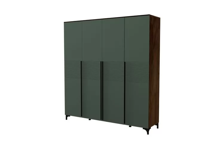 Глубина - 520 мм Ширина - 2002 мм Высота - 2167 мм Срок службы - 7 лет Гарантийный срок - 18 месяцев Монтаж - Требует сборки Фрезеровка фасада - Да Материал фасада - МДФ Материал корпуса - ЛДСП Количество дверей - 4 шт Фурнитура - Шариковые направляющие полного выдвижения, Штанга для одежды Коллекция - Спальня «Брента» Оливковый Цвет корпуса - Таксус Цвет фасада - Оливковый Количество выдвижных ящиков - 2 шт