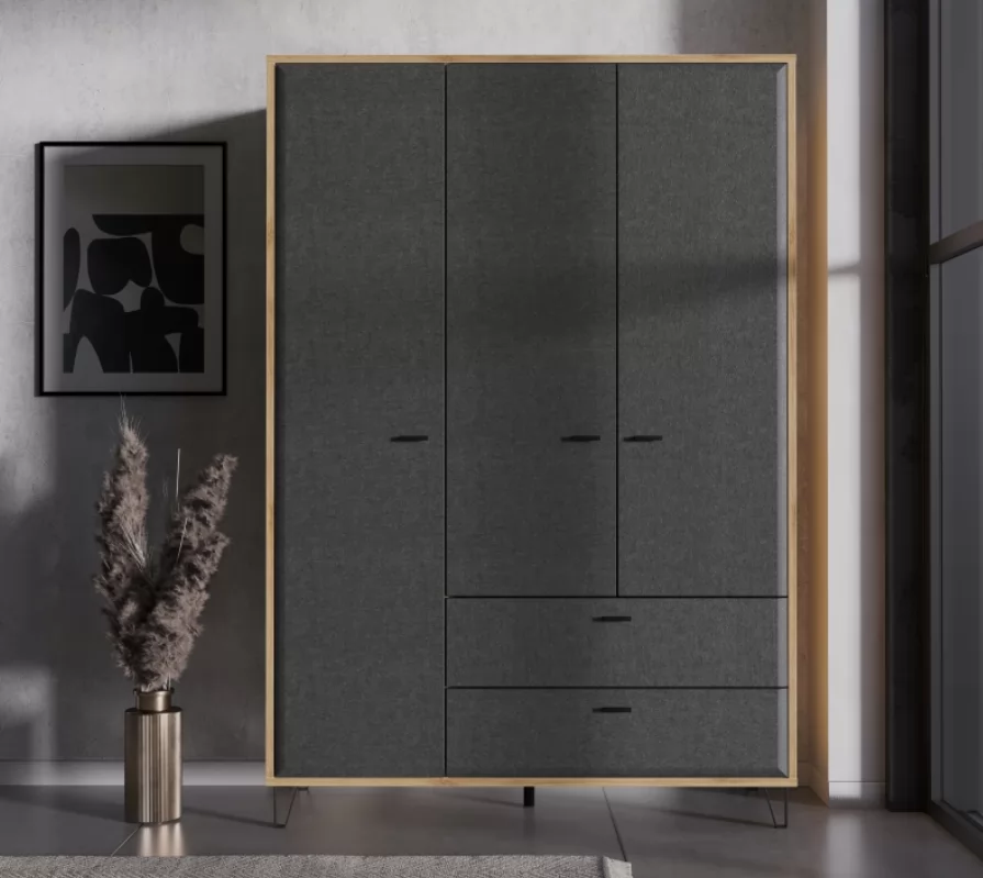 Трехстворчатый шкаф Grace дуб наварра/графит SZF3D2S станет вашим помощником в спальне, гардеробной или коридоре.