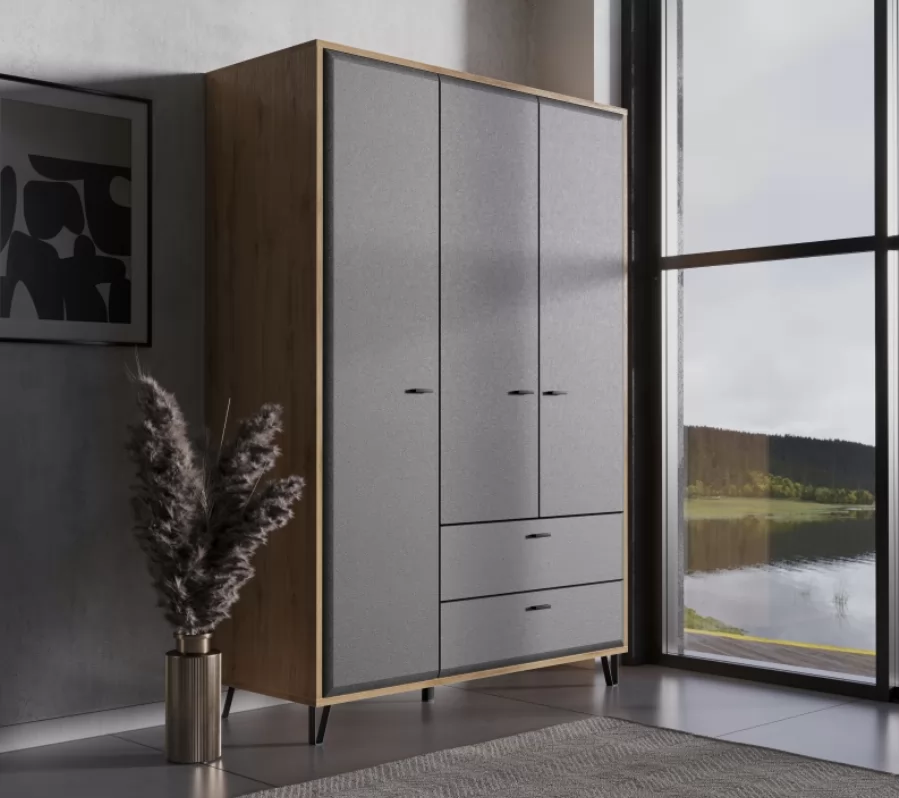 Шифоньер установлен на прочных металлических ножках, которые придают ему индивидуальность. Высокие ножки не только делают шкаф стильным элементом, но и облегчают уборку под ним.