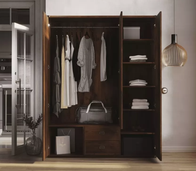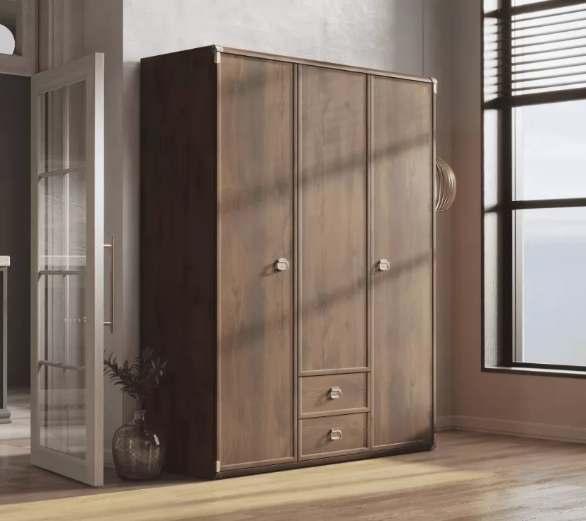 Текстура «Дуб Саттер» с мягкими переходами серо-бежевых оттенков напоминает о солнечных прогалинах в лесу. Матовая поверхность фасадов из высококачественного ЛДСП подчеркивает природную красоту дерева, а лаконичные линии и отсутствие лишнего декора делают шкаф универсальным для любого стиля — от лофта до скандинавского интерьера. Стильные металлические ручки в цвете «старая латунь» добавляют современный акцент, сохраняя баланс между простотой и изысканностью.