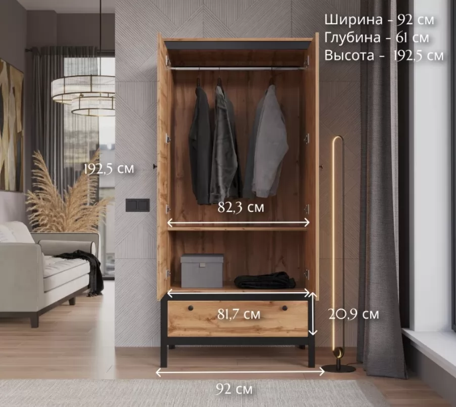 Размер (ШxВxГ):920x1925x610 мм