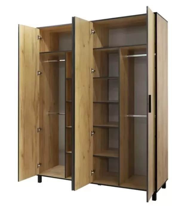 Ширина (мм): 1600 Высота (мм): 2100 Глубина (мм): 550 Цвет: Дуб крафт золотой/Черный Материал: ЛДСП/Зеркало Вес, кг: 175 Объем, м3: 0.31 Корпус — ЛДСП 16 мм Кромка ПВХ 0.4 мм Кромка ПВХ 2 мм Зеркало с фацетом Ручки — черный пластик Дверцы с доводчиком Опоры — черный металл (ФМС) Размер зеркала: 1950х410 мм Возможно исполнение с разными типами опор