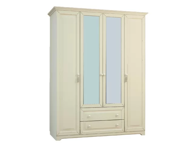 Нет ничего лучше, чем сочетание красоты и практичности. 4-створчатый шкаф «Белла» тому доказательство. Фасады шкафа выполнены в нежном оттенке джелато, дверцы украшены фрезеровкой, а ручки – декоративными кистями. Центральный отсек шкафа оснащен круглой штангой для одежды, а боковые – полками. Выдвижные ящики прекрасно подойдут для хранения вещей.