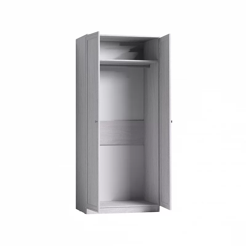 Вместительный распашной шкаф благодаря современным планировкам квартир, всегда найдет свое место в гостиной. Глухой фасад дверей шкафа декорирован маленькими металлическими ручками и обрамлен сложным профилем МДФ, что обеспечивает ему привлекательный внешний вид. Внутри шкаф оснащен полкой для головных уборов и стационарной штангой 857 мм, которая позволит разместить в шкафу до 13 плечиков с верхней одеждой.