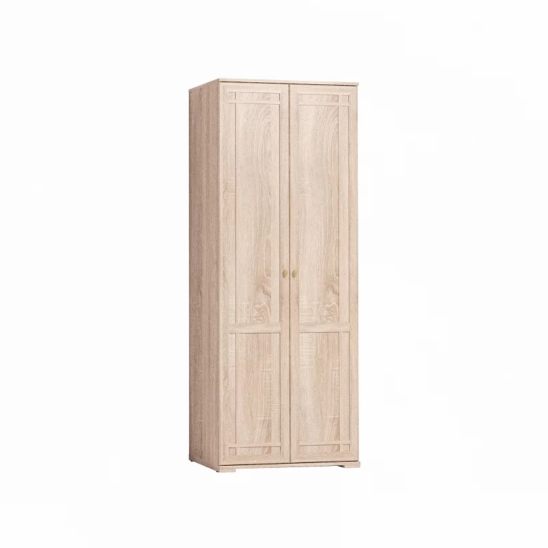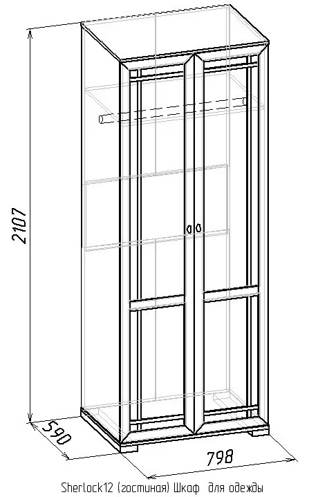 В распашном платяном шкафу со стационарной штангой для одежды длиной 757 мм можно разместить до 10 плечиков с тяжелой верхней одеждой. На верхней полке можно хранить аксессуары и коробки с головными уборами.